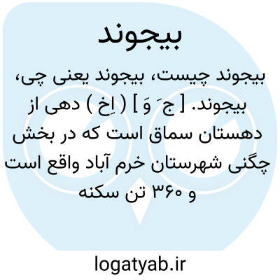 بیجوند. [ ج َ وَ ] ( اِخ ) دهی از دهستان سماق است که در بخش چگنی شهرستان خرم آباد واقع است و 360 تن سکنه دارد. ( از فرهنگ جغرافیائی ایران ج 6 ).