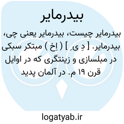 بیدرمایر. [ دِ ی ِ ] ( اِخ ) مبتکر سبکی در مبلسازی و زینتگری که در اوایل قرن 19 م. در آلمان پدید آمد. این سبک ساده تر و کم خرج تر از سبکهای امپراطوری و دیرکتوار فرانسه و قرن 18م. انگلستان است. سطح قفسه ها و مجریهایی که به این سبک ساخته شده شامل خطوط مستقیم ومحکم است، در حالی که صندلیها و مبلهای آن دارای خطوط ملایم و پیچ پیچ میباشد. ( دائرة المعارف فارسی ).
