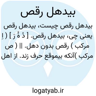 بیدهل رقص. [ دُ هَُ رَ ] ( اِ مرکب ) رقص بدون دهل. || ( ص مرکب )آنکه بیموقع حرف زند. از اهل زبان بتحقیق پیوسته...( آنندراج ). و رجوع به مجموعه مترادفات ص 370 شود.
