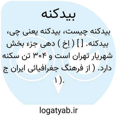 بیدکنه. [ ] ( اِخ ) دهی جزء بخش شهریار تهران است و 304 تن سکنه دارد. ( از فرهنگ جغرافیائی ایران ج 1 ).