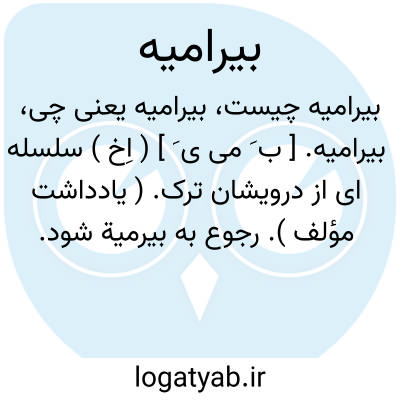 لغت نامه دهخدا بیرامیه. [ ب َ می ی َ ] ( اِخ ) سلسله ای از درویشان ترک. ( یادداشت مؤلف ). رجوع به بیرمیة شود.