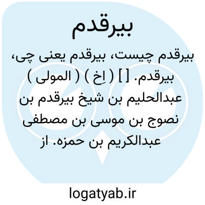 لغت نامه دهخدا بیرقدم. [ ] ( اِخ ) ( المولی ) عبدالحلیم بن شیخ بیرقدم بن نصوج بن موسی بن مصطفی عبدالکریم بن حمزه. از علماء قرن یازدهم هجری. او راست: کشف رموز. غررالاحکام و تنویر الحکام ( فقه حنفی ) تألیف 1060 هَ. ق. ) ( از معجم المطبوعات ).