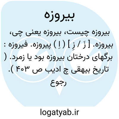 بیروزه. [ زَ / زِ ] ( اِ ) پیروزه. فیروزه: برگهای درختان بیروزه بود یا زمرد. ( تاریخ بیهقی چ ادیب ص 403 ). رجوع به فیروزه شود. || لباس همیشگی شخصی. ( ناظم الاطباء ).