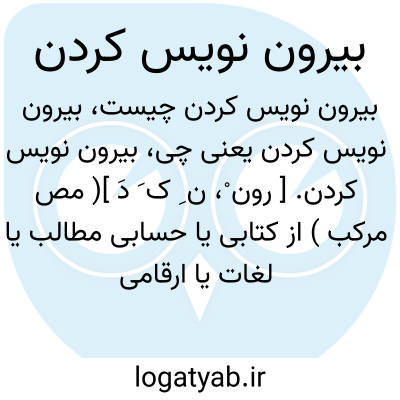 بیرون نویس کردن. [ رون ْ، ن ِ ک َ دَ ]( مص مرکب ) از کتابی یا حسابی مطالب یا لغات یا ارقامی را برای مقصودی در جای دیگر نوشتن. عده ای از اقلام حسابی را جدا و جمع کردن. اقلام معلومی را از حسابی در جای دیگر نوشتن. ( یادداشت مؤلف ). استخراج کردن مطلب لازم از میان مطالب مشروح در یک کتاب یا رساله.