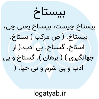 لغت نامه دهخدا بیستاخ. ( ص مرکب ) بستاخ. استاخ. گستاخ. بی ادب.( از جهانگیری ) ( برهان ). گستاخ و بی ادب و بی شرم و بی حیا. ( ناظم الاطباء ). گستاخ. ( انجمن آرا ) ( آنندراج ).