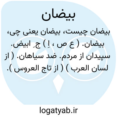 بیضان. ( ع ص، اِ ) ج ِ ابیض. سپیدان از مردم. ضد سیاهان. ( از لسان العرب ) ( از تاج العروس ). مقابل سودان. سپیدپوستان. سپیدان. ( یادداشت مؤلف ). سپیدان. ضد سیاهان. ( منتهی الارب ): أبیضت المراءة و اباضت؛ ولدت البیضان. ( لسان العرب ) ( از اقرب الموارد ).