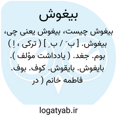 بیغوش. [ ب َ / ب ِ ] ( ترکی، اِ ) بوم. جغد. ( یادداشت مؤلف ). بایغوش. بایقوش. کوف. بوف. فاطمه خانم ( در تداول عامه ).