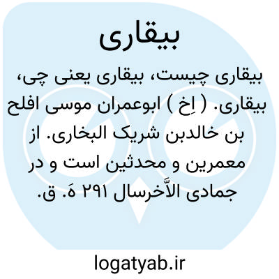 بیقاری. ( اِخ ) ابوعمران موسی افلح بن خالدبن شریک البخاری. از معمرین و محدثین است و در جمادی الاَّخرسال 291 هَ. ق. درگذشته است. ( از انساب سمعانی ).