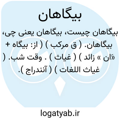 لغت نامه دهخدا بیگاهان. ( ق مرکب ) ( از: بیگاه + «َان » زائد ) ( غیاث ). وقت شب. ( غیاث اللغات ) ( آنندراج ).