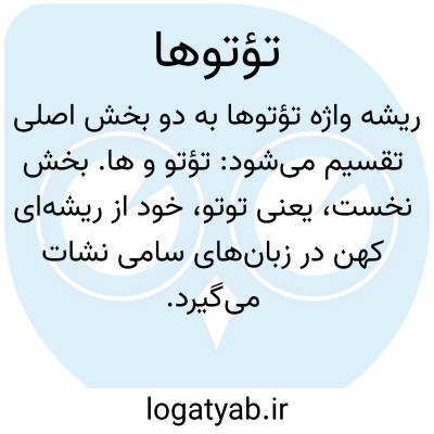 ریشهٔ واژهٔ تؤتوها به دو بخش اصلی تقسیم می‌شود: تؤتو و ها. بخش نخست، یعنی تؤتو، خود از ریشه‌ای کهن در زبان‌های سامی نشأت می‌گیرد و در زبان‌هایی مانند عربی به صورت تَأْتَأَ به کار رفته است که بر مفهوم لکنت زبان یا سخن گفتن به‌شکل منقطع و نامفهوم دلالت دارد. این ریشه در گذر زمان و با انتقال به زبان فارسی، تغییراتی آوایی را تجربه کرده و به شکل تؤتو درآمده است. کاربرد این واژه معمولاً در اشاره به گفتار نارسا و بریده‌بریده است که فاقد روانی و پیوستگی لازم باشد.