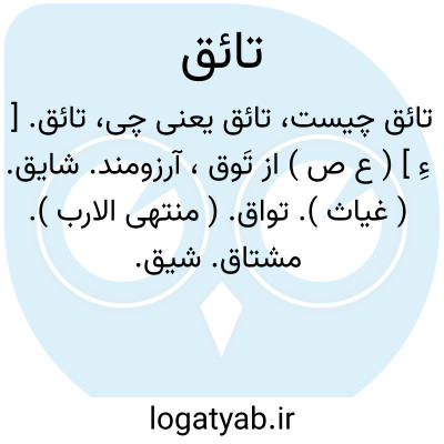 لغت نامه دهخدا تائق. [ ءِ ] ( ع ص ) از تَوق، آرزومند. شایق. ( غیاث ). تواق. ( منتهی الارب ). مشتاق. شیق.