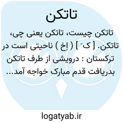 تاتکن. [ ک َ ] ( اِخ ) ناحیتی است در ترکستان: درویشی از طرف تاتکن بدریافت قدم مبارک خواجه آمد... آن درویش تاتکنی بر همان حال افتاده بود. ( انیس الطالبین نسخه خطی کتابخانه مؤلف ص 109 و 110 )... چون به تاتکن رسیدند شنیدند که خواجه در سر پل اند... از تاتکن درویش با ایشان موافقت کرد. ( انیس الطالبین ص 153 )... درویش عزیزی از درویشان خواجه از تاتکن رسید...آن درویش تاتکنی را مصافحه نکردند. ( انیس الطالبین ص 135 ).... من در تاتکن می بودم وبه جمعی از درویشان خواجه که در آنجا می بودند مصاحب می بودم. ( انیس الطالبین ص 214 ).... فرمودند خوش آمدی درویش تاتکنی... از آن روزی که در تاتکن در منزل فلان درویش ما بودی... ( انیس الطالبین ص 218 ).... از تاتکن بطرف بخارا متوجه شدم. ( انیس الطالبین ص 224 ).