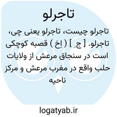 تاجرلو. [ ج ِ ] ( اِخ ) قصبه کوچکی است در سنجاق مرعش از ولایات حلب واقع در مغرب مرعش و مرکز ناحیه ای است که تابع مرکز لوا است. ( قاموس الاعلام ترکی ).