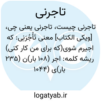 دانشنامه اسلامی [ویکی الکتاب] معنی تَأْجُرَنِی: که اجیرم شوی(که برای من کار کنی)ریشه کلمه: اجر (۱۰۸ بار)ن (۲۳۵ بار)ی (۱۰۴۴ بار)