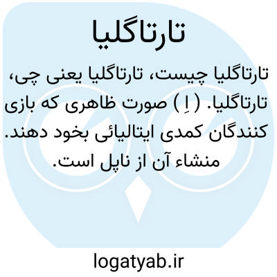 تارتاگلیا. ( اِ ) صورت ظاهری که بازی کنندگان کمدی ایتالیائی بخود دهند. منشاء آن از ناپل است. بکاربرنده آن نوکری است پرچانه، با گفتاری تند و نامفهوم، دائماً در خشم، چاق و چله، خودستا و ترسو، تنگ نظر و دارای عینکی درشت برنگ آبی. این نمونه در کشور فرانسه کمتر رواج یافته است.