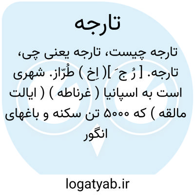 تارجه. [ رُ ج َ ]( اِخ ) طُرّاز. شهری است به اسپانیا ( غرناطه ) ( ایالت مالقه ) که 5000 تن سکنه و باغهای انگور بسیار نیکو دارد. تجارت آنجا مشروبات الکلی و میوه است و کارخانه های پارچه بافی دارد.