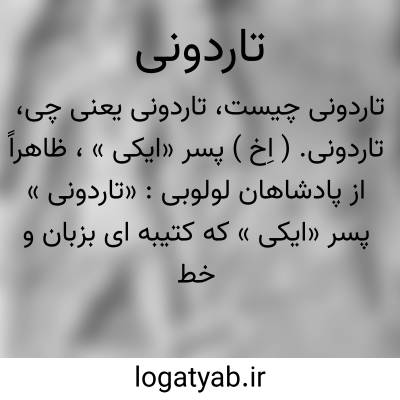 تاردونی. ( اِخ ) پسر «ایکی »، ظاهراً از پادشاهان لولوبی: «تاردونی » پسر «ایکی » که کتیبه ای بزبان و خط «آکادی » دارد، از خدایان بابل «شمش » و «اداد» یاری می طلبد، این «تاردونی » هم در همین زمان می زیسته و ظاهراً از پادشاهان «لولوبی » باید شمرده شود. ( کرد و پیوستگی نژادی و تاریخی او، رشید یاسمی ص 27 ).