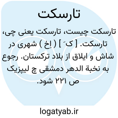 تارسکت. [ ک َ ] ( اِخ ) شهری در شاش و ایلاق از بلاد ترکستان. رجوع به نخبة الدهر دمشقی چ لیپزیک ص 221 شود.