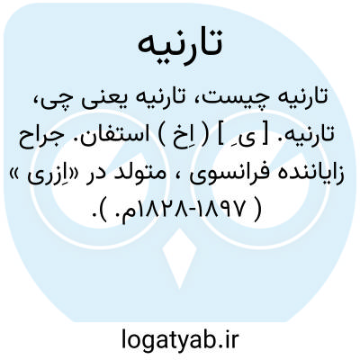 لغت نامه دهخدا تارنیه. [ ی ِ ] ( اِخ ) استفان. جراح زایاننده فرانسوی، متولد در «اِزری » ( 1828-1897م. ).