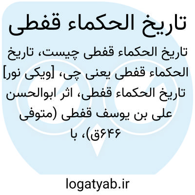 این اثر، مهم ترین کتاب باقی مانده از قفطی می باشد که شهرت این مورخ و ادیب تا حد زیادی مدیون این اثر گران بها است. نام اصلی کتاب «إخبار العلماء بأخبار الحکماء» بوده است. متن کامل آن نمانده و آنچه با نام «تاریخ الحکماء قفطی» باقی مانده، نسخه هایی است که به وسیله محمد بن علی بن محمد خطیبی زوزنی در رجب سال 647ق؛ یعنی یک سال پس از درگذشت نگارنده، اختصار شده است.