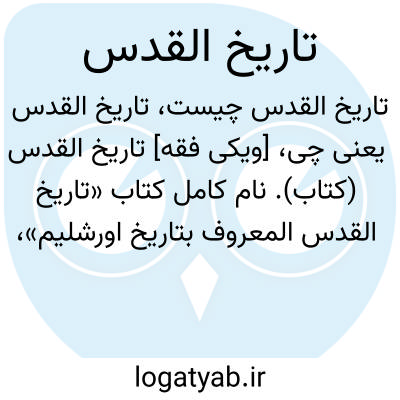 [ویکی فقه] تاریخ القدس (کتاب). نام کامل کتاب «تاریخ القدس المعروف بتاریخ اورشلیم»، تالیف خلیل سرکیس (۱۳۳۳- ۱۲۵۸ ق)، به زبان عربی و در موضوع بیان تاریخ سرزمین قدس ( اورشلیم ) می باشد.