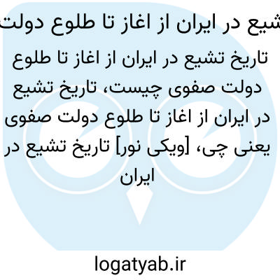 [ویکی نور] تاریخ تشیع در ایران از آغاز تا طلوع دولت صفوی (تهران). تاریخ تشیّع در ایران از آغاز تا طلوع دولت صفوی از آثار مورخ معاصر حجت الاسلام رسول جعفریان (متولد 1343ش) است که در آن، پیدایش، تحول و تاریخ تشیّع در ایران را از آغاز تا پایان قرن نهم هجری مورد بررسی تحلیلی و مستند قرار داده است. همان طور که از عنوان کتاب و تعبیر «تا طلوع دولت صفوی» روشن می شود در این اثر بحث قابل توجهی در مورد صفویه انجام نشده و به اشاراتی بسنده شده و بحث در آغاز صفویه پایان یافته است.