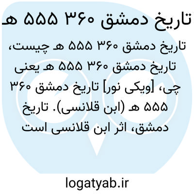 [ویکی نور] تاریخ دمشق 360 555 هـ (ابن قلانسی). تاریخ دمشق، اثر ابن قلانسی است که در حقیقت آن چه بیشتر سبب شهرت وی شده، این کتاب تاریخی معروف او است که مذّیل التاریخ الدمشقی یا ذیل تاریخ دمشق یا الذیل فی تاریخ دمشق نام دارد که به زبان عربی می باشد و از دیر باز مورد استفاده و استناد بسیاری از مورخان بوده است.