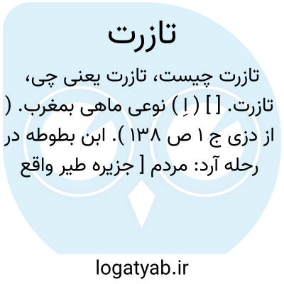 تازرت. [ ] ( اِ ) نوعی ماهی بمغرب. ( از دزی ج 1 ص 138 ). ابن بطوطه در رحله آرد: مردم [ جزیره طیر واقع در خلیج فارس ] بامداد و شام نوعی ماهی شکار می کردند که به فارسی آنرا شیرماهی خوانند... و آن مشابه ماهیی است که ما ( مردم مغرب ) آنرا تازرت نامیم. ( از رحله ابن بطوطه چ مصر ج 1 ص 169 ).