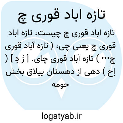 ( تازه آباد قوری چ••• ) تازه آباد قوری چای. [ زَ دِ ] ( اِخ ) دهی از دهستان ییلاق بخش حومه شهرستان سنندج است که در 32هزارگزی خاور سنندج و 10هزارگزی شمال شوسه سنندج و همدان واقع است و جلگه و سردسیر است و 500 تن سکنه دارد، کردی. آب آن از چشمه. محصول آن غلات. شغل اهالی زراعت و گله داری و صنایع دستی زنان قالیچه، جاجیم، گلیم بافی. راه مالرو دارد. ( از فرهنگ جغرافیائی ایران ج 5 ).
