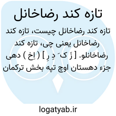 تازه کند رضاخانلو. [ زَ ک َ دِ رِ ] ( اِخ ) دهی جزء دهستان اوچ تپه بخش ترکمان شهرستان میانه است که در 18هزارگزی جنوب بخش و 17هزارگزی شوسه و 3هزارگزی راه آهن میانه - تبریز واقع است. کوهستانی و معتدل است و 71 تن سکنه دارد، شیعه، ترکی. آب آن از چشمه. محصول آن غلات، حبوبات. شغل اهالی زراعت و گله داری. راه مالرو دارد. ( از فرهنگ جغرافیائی ایران ج 4 ).