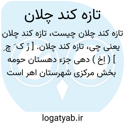 تازه کند چلان. [ زَ ک َ چ ِ ] ( اِخ ) دهی جزء دهستان حومه بخش مرکزی شهرستان اهر است که در 17هزارگزی باختر اهر و 1500گزی جاده ارابه رو تبریز- اهر واقع است. کوهستانی،معتدل مایل بگرمی، مالاریائی. 94 تن سکنه دارد، شیعه، ترکی. آب آن از رودخانه اهرچای. محصول آنجا غلات. شغل اهالی زراعت و گله داری. صنایع دستی آن جاجیم بافی. راه مالرو دارد. ( از فرهنگ جغرافیائی ایران ج 4 ).