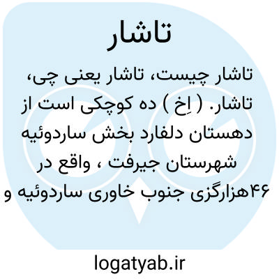 تاشار. ( اِخ ) ده کوچکی است از دهستان دلفارد بخش ساردوئیه شهرستان جیرفت، واقع در 46هزارگزی جنوب خاوری ساردوئیه و 9هزارگزی خاور راه مالرو جیرفت به ساردوئیه. دارای 10تن سکنه میباشد. ( از فرهنگ جغرافیائی ایران ج 8 ).