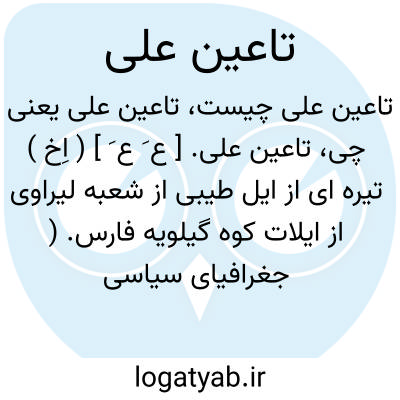 تاعین علی. [ ع َ ع َ ] ( اِخ ) تیره ای از ایل طیبی از شعبه لیراوی از ایلات کوه گیلویه فارس. ( جغرافیای سیاسی کیهان ص 89 ).