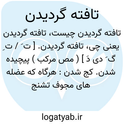 تافته گردیدن. [ ت َ / ت ِ گ َ دی دَ ] ( مص مرکب ) پیچیده شدن. کج شدن: هرگاه که عضله های مجوف تشنج کند، حدقه از موضع خویش زایل شود و چشم تافته گردد همچون چشم احول. ( ذخیره خوارزمشاهی ).