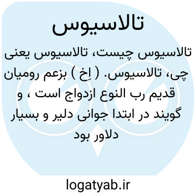 تالاسیوس. ( اِخ ) بزعم رومیان قدیم رب النوع ازدواج است، و گویند در ابتدا جوانی دلیر و بسیار دلاور بود و با دختری بغایت زیبا ازدواج کرد و زندگانی را با خوشی گذراندند و از این رو نامشان در زمره ارباب انواع موهومی درآمد. ( از قاموس الاعلام ترکی ).