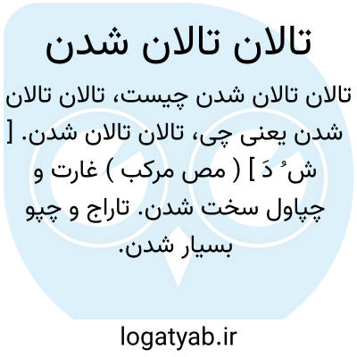 لغت نامه دهخدا تالان تالان شدن. [ ش ُ دَ ] ( مص مرکب ) غارت و چپاول سخت شدن. تاراج و چپو بسیار شدن. رجوع به تالان و تالان تالان بودن شود.