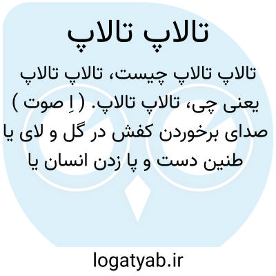 تالاپ تالاپ. ( اِ صوت ) صدای برخوردن کفش در گل و لای یا طنین دست و پا زدن انسان یا حیوانی در آب. تَلَپ یا تُلُپ یا تِلِپ.