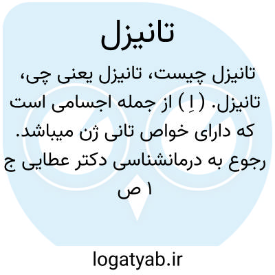 تانیزل. ( اِ ) از جمله اجسامی است که دارای خواص تانی ژن میباشد. رجوع به درمانشناسی دکتر عطایی ج 1 ص 479 و تانی ژن شود.