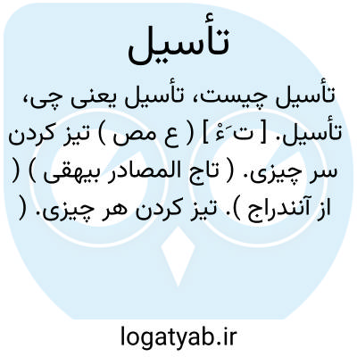 تأسیل. [ ت َءْ ] ( ع مص ) تیز کردن سر چیزی. ( تاج المصادر بیهقی ) ( از آنندراج ). تیز کردن هر چیزی. ( منتهی الارب ) ( از قطر المحیط ). تأسیل سلاح؛ تیز کردن آن و قرار دادن آن مانند اسل ( نیزه ). ( از اقرب الموارد ). || تأسیل باران؛ رسیدن تری و نمی آن اسله دست را. ( از منتهی الارب ) ( از قطر المحیط ) ( از ناظم الاطباء ). || دراز کردن چیزی. ( از قطر المحیط ). || تأسی-ل ثُم-ام؛ ص-ارت خُوص-ه ُ کالاس-ل. ( اقرب الموارد ).