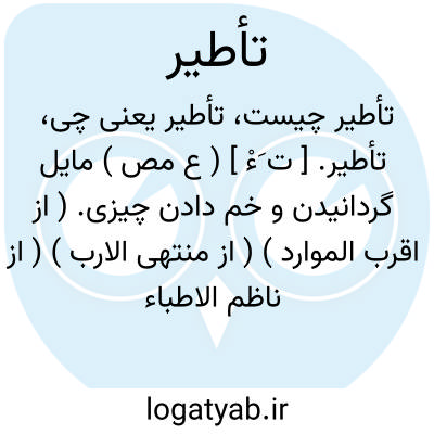 تأطیر. [ ت َءْ ] ( ع مص ) مایل گردانیدن و خم دادن چیزی. ( از اقرب الموارد ) ( از منتهی الارب ) ( از ناظم الاطباء ). || پی پیچیدن بر سوفار تیر. ( منتهی الارب ) ( ناظم الاطباء ).