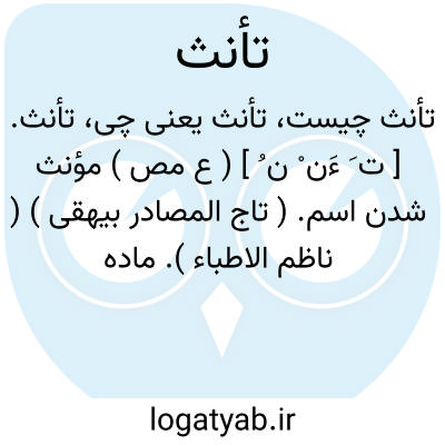 تأنث. [ ت َ ءَن ْ ن ُ ] ( ع مص ) مؤنث شدن اسم. ( تاج المصادر بیهقی ) ( ناظم الاطباء ). ماده گردیدن یا مؤنث شدن. ( از قطر المحیط ) ( از اقرب الموارد ). || نرم گردیدن. ( منتهی الارب ) ( ناظم الاطباء ). تأنث بکسی. نرم گردیدن و سخت گیری نکردن به وی. ( از اقرب الموارد ). تأنث به کسی؛ نرمی کردن و آسان گیری نسبت به وی. ( از قطر المحیط ).