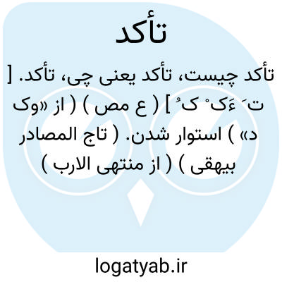 تأکد. [ ت َ ءَک ْ ک ُ ] ( ع مص ) ( از «وک د» ) استوار شدن. ( تاج المصادر بیهقی ) ( از منتهی الارب ) ( از ( قطر المحیط ) ( دهار ) ( زوزنی ) ( از ناظم الاطباء ) ( آنندراج ). اشتداد. استحکام. توثق. تؤکد. ( از اقرب الموارد ).