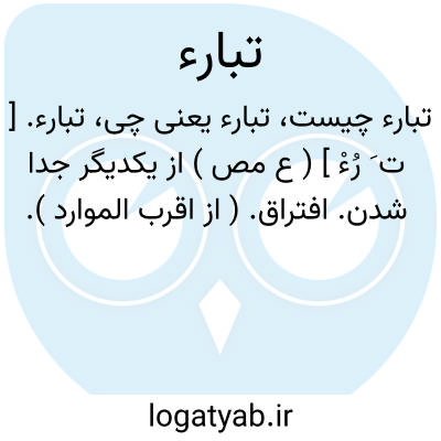 تبارء. [ ت َ رُءْ ] ( ع مص ) از یکدیگر جدا شدن. افتراق. ( از اقرب الموارد ).