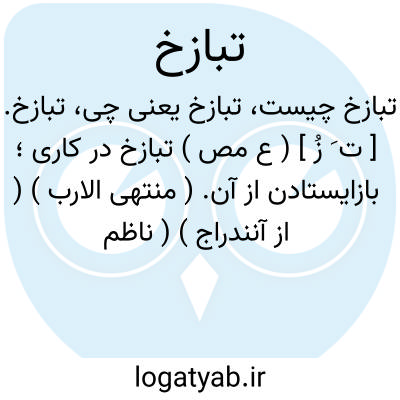 تبازخ. [ ت َ زُ ] ( ع مص ) تبازخ در کاری؛ بازایستادن از آن. ( منتهی الارب ) ( از آنندراج ) ( ناظم الاطباء ). تقاعس از آن. ( از اقرب الموارد ) ( از قطر المحیط ). || تبازخ فرس؛ دوتا کردن اسب سم خود را به شکمش هنگام نوشیدن آب به خاطر کوتاهی گردن. ( از اقرب الموارد ). || تبازخ زن؛ کلان سرین شدن. ( منتهی الارب ) ( از آنندراج ) ( ناظم الاطباء ). خارج شدن عجیزت او. ( از قطر المحیط ).