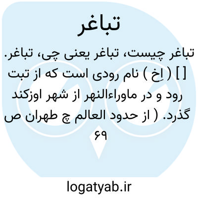 تباغر. [ ] ( اِخ ) نام رودی است که از تبت رود و در ماوراءالنهر از شهر اوزکند گذرد. ( از حدود العالم چ طهران ص 69 ).