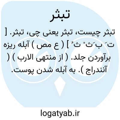 تبثر. [ ت َ ب َث ْ ث ُ ] ( ع مص ) آبله ریزه برآوردن جلد. ( از منتهی الارب ) ( آنندراج ). به آبله شدن پوست. ( تاج المصادر بیهقی ). جوش زدن. آبله کردن پوست.
