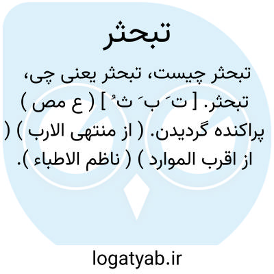 لغت نامه دهخدا تبحثر. [ ت َ ب َ ث ُ ] ( ع مص ) پراکنده گردیدن. ( از منتهی الارب ) ( از اقرب الموارد ) ( ناظم الاطباء ).