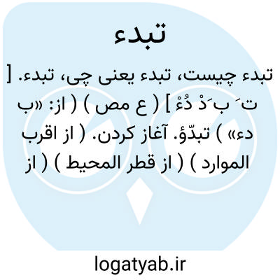 تبدء. [ ت َ ب َدْ دُءْ ] ( ع مص ) ( از: «ب دء» ) تبدّؤ. آغاز کردن. ( از اقرب الموارد ) ( از قطر المحیط ) ( از منتهی الارب ). رجوع به تبدّؤ شود.