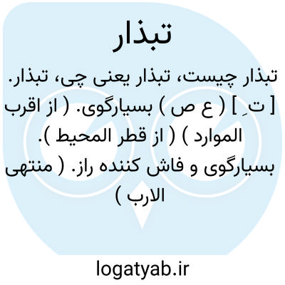 تبذار. [ ت ِ ] ( ع ص ) بسیارگوی. ( از اقرب الموارد ) ( از قطر المحیط ). بسیارگوی و فاش کننده راز. ( منتهی الارب ) ( ناظم الاطباء ).