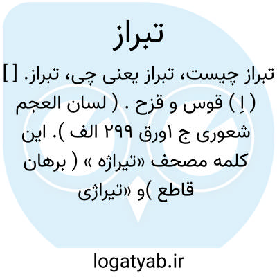 تبراز. [ ] ( اِ ) قوس و قزح. ( لسان العجم شعوری ج 1ورق 299 الف ). این کلمه مصحف «تیراژه » ( برهان قاطع )و «تیراژی » ( لغت فرس ) است. رجوع بهمین کلمات شود.